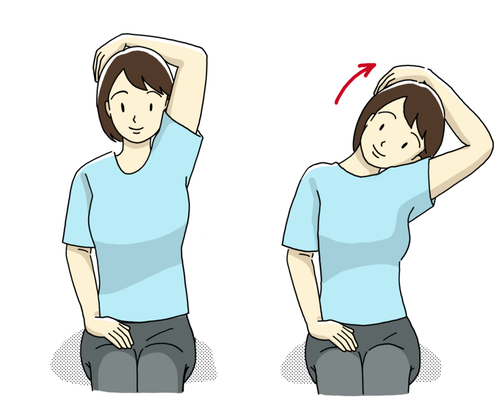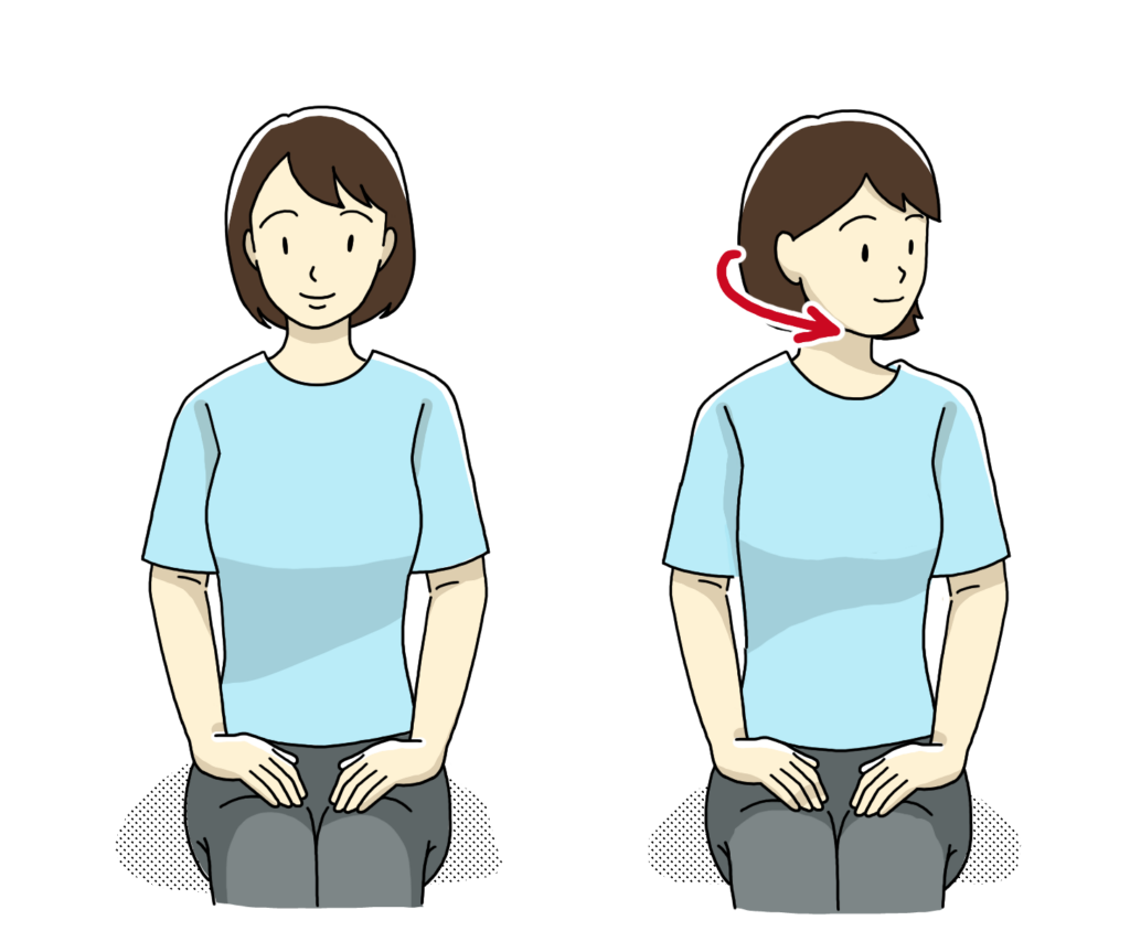 手の重みを利用して、首を右側へゆっくり倒していきます。