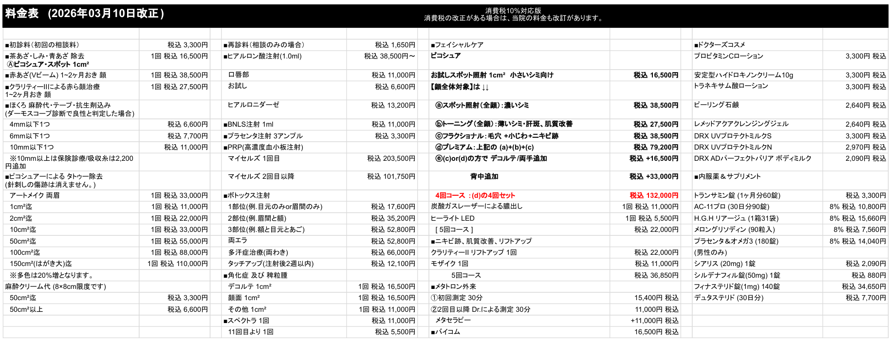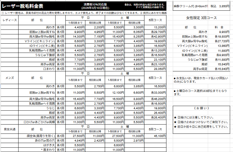 料金一覧