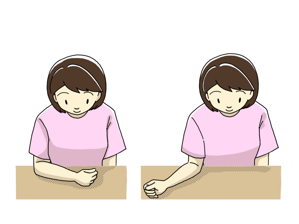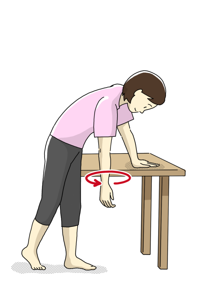 少し前かがみの姿勢になり、痛い方の腕をだらんと床へ垂らします。