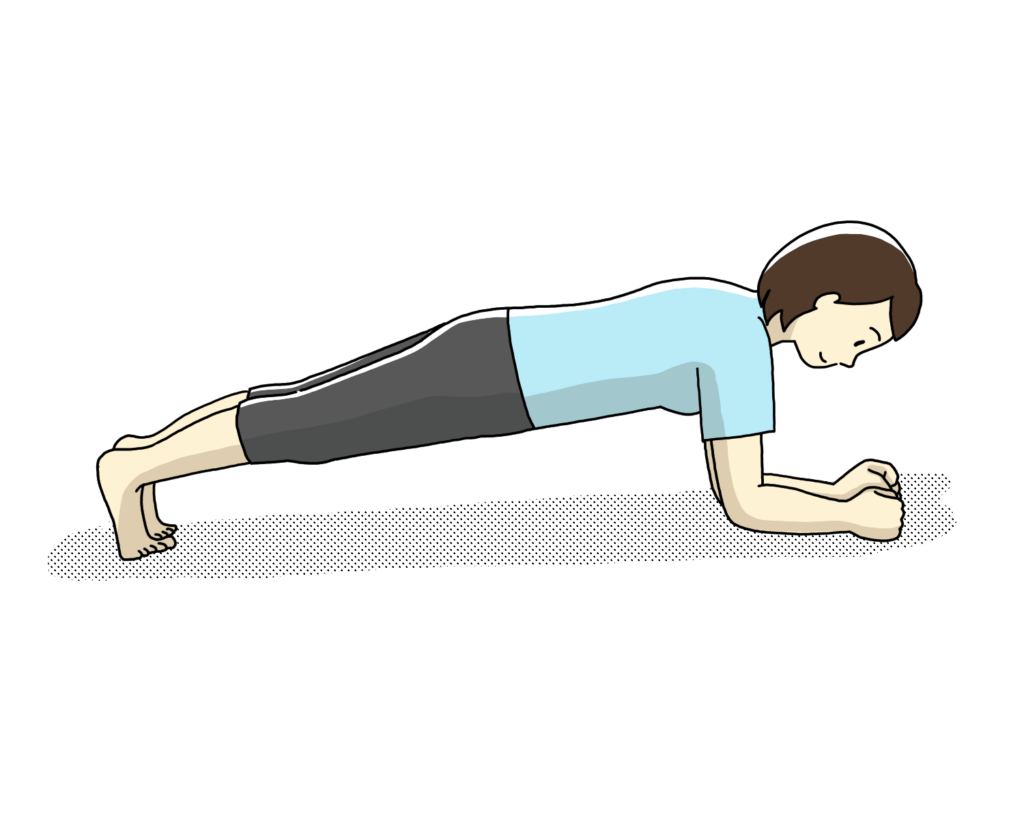 うつ伏せの姿勢から、両肘と前腕を床につけます。