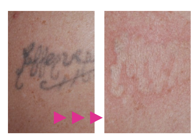従来のQスイッチレーザー(ナノ秒)とは比べ物にならないほど、早く、綺麗に、そして痛みを少なくタトゥーを除去することが可能です。肌へのダメージも少ないため、今までよりも短い期間(約2ヶ月間隔)で治療を進めることができます。